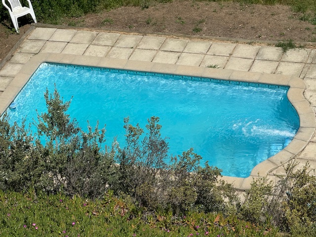 Terraza, piscina y jardín formado